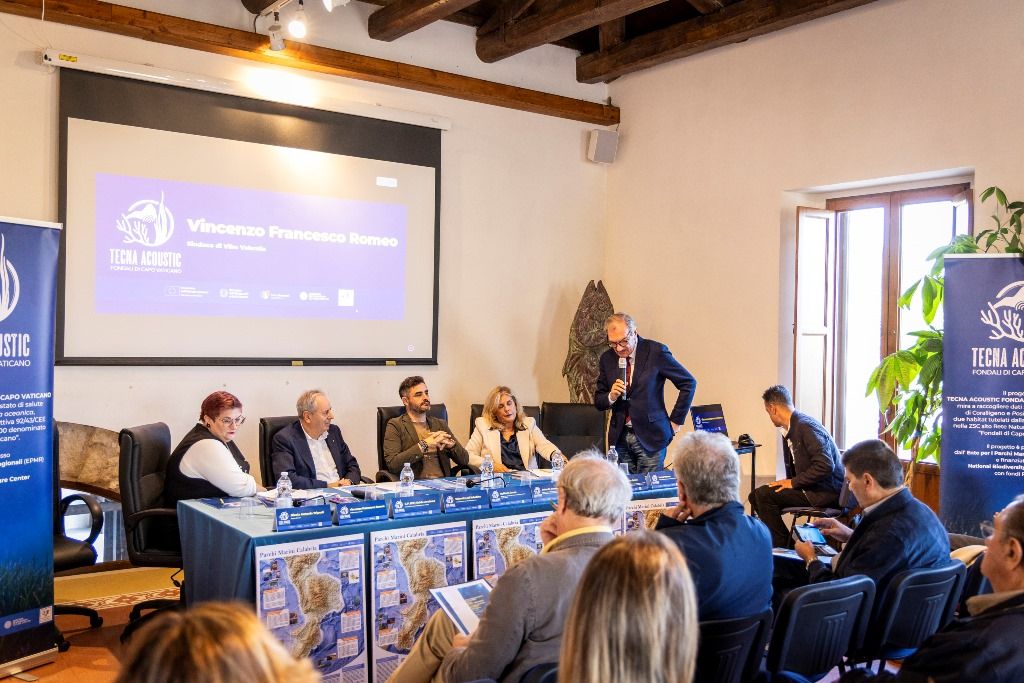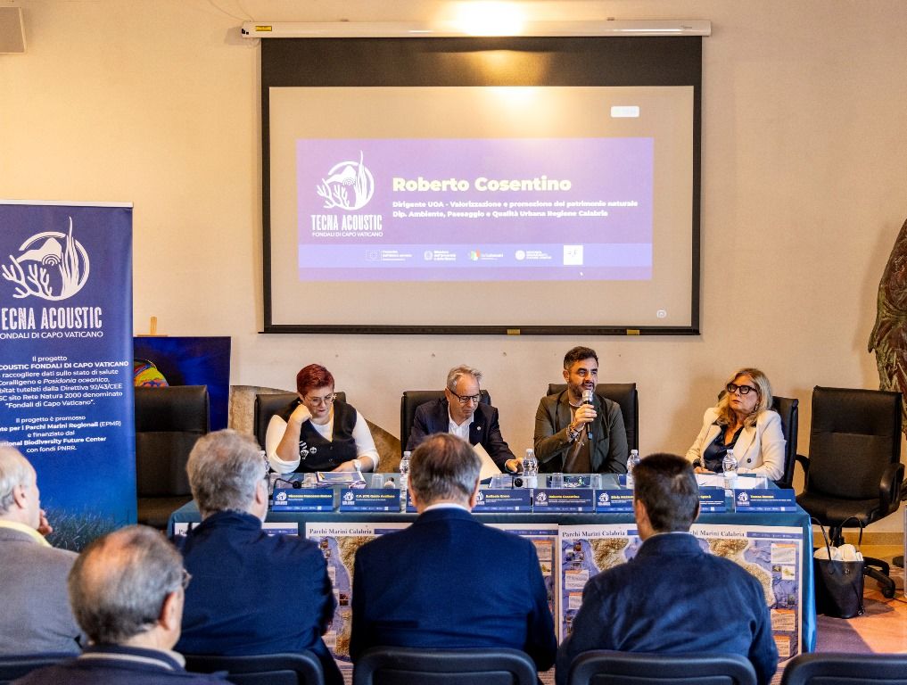 Un posidonieto esteso ed in ottima salute ed un coralligeno presente, anche se in maniera sporadica. La buona notizia è che su entrambi gli habitat i segni di impatto antropico sono rari e per lo più riconducibili allo smarrimento di attrezzi di piccola pesca. – Sono, questi, i risultati del progetto presentati da Luciana Muscogiuri, Consulente scientifica per il progetto Tecna Acoustic, Ente per i Parchi Marini Regionali (EPMR) e da Cataldo Licchelli, Biologo Marino della Cooperativa Hydra. Sono intervenuti anche, Silvia Mazzucca, docente del Dipartimento di Chimica e Tecnologie Chimiche dell’Università della Calabria; Franco Saragòm Presidente Circolo Legambiente Ricadi, Nunziacarla Spanò, Direttrice del CHI BIO FARAM e docente ordinario presso il Dipartimento di Scienze Biomediche, Odontoiatriche e delle Immagini Morfologiche e Funzionali dell’Università di Messina, Teresa Romeo, direttrice della Stazione Zoologica “Anton Dohrn” sedi Calabria e Sicilia, Dario Giuliano, referente Associazione Amici del Mare – Capo Vaticano, Valentina Di Sabatino del Consiglio Nazionale delle Ricerche (CNR) di Roma.